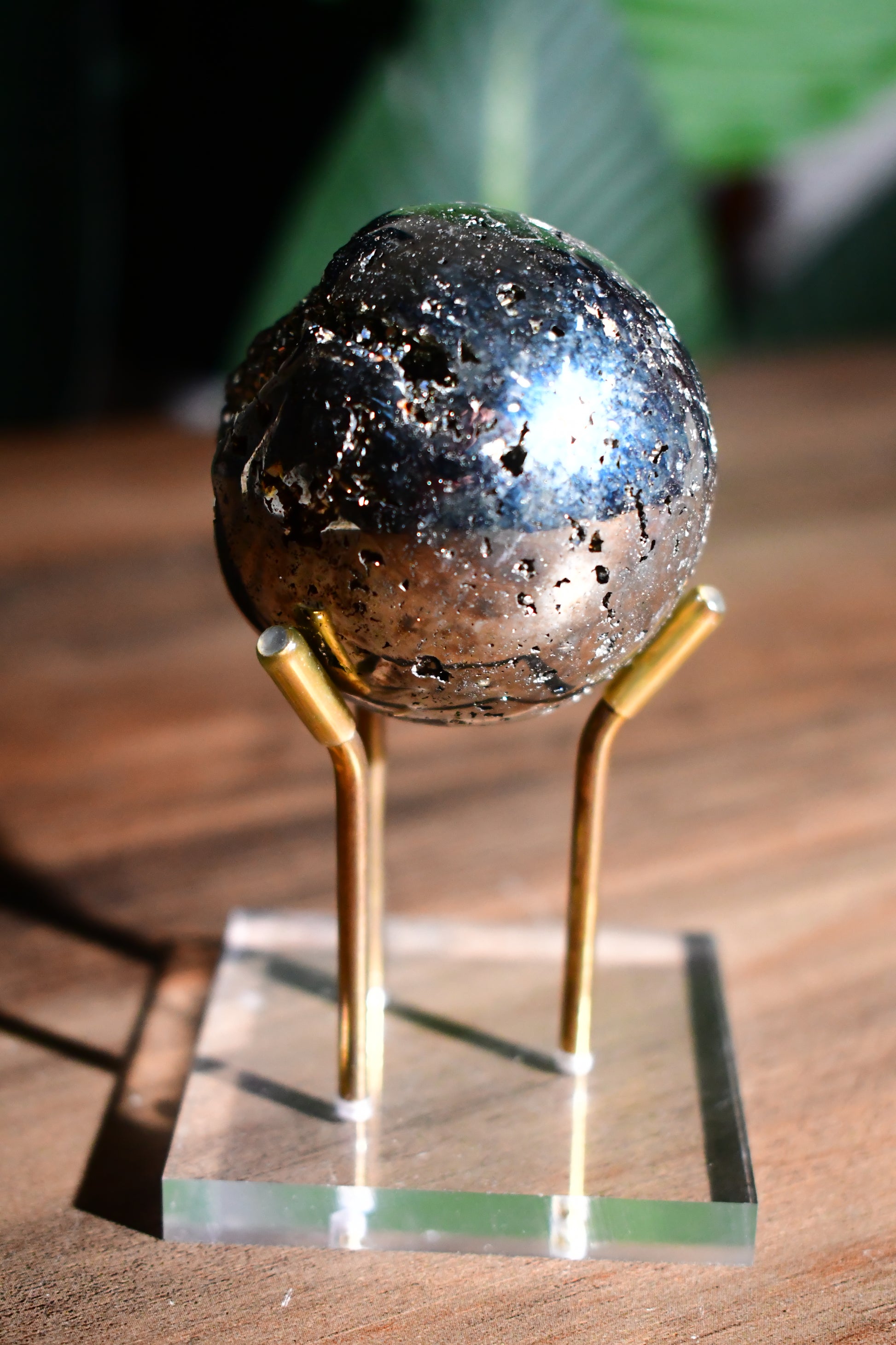 Introducing our stunning Druzy Pyrite Sphere from Peru, a captivating piece that combines natural beauty with powerful energy. The sphere showcases an enchanting druzy finish, sparkling with tiny crystals that catch the light beautifully, making it a striking addition to any space.
