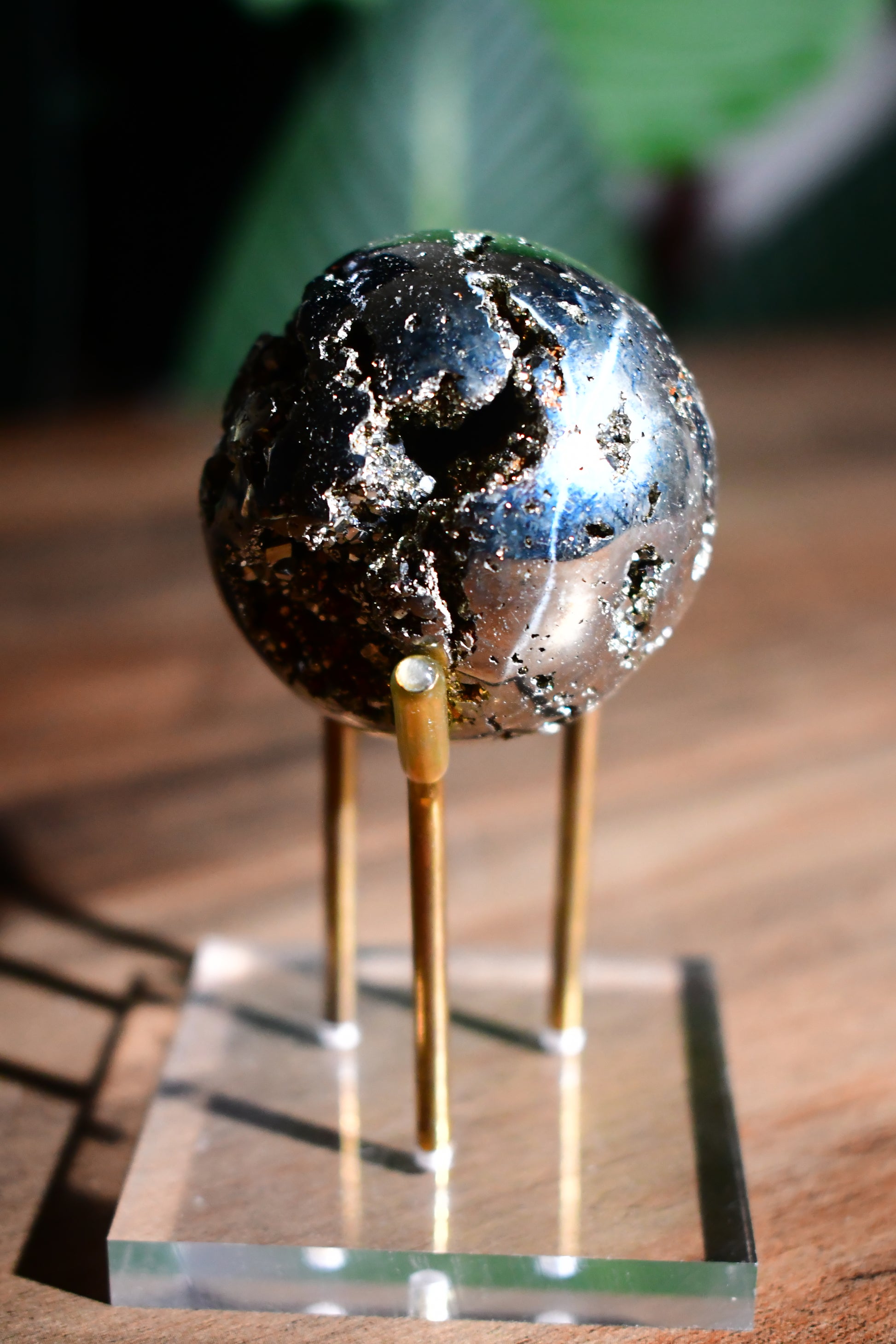 Introducing our stunning Druzy Pyrite Sphere from Peru, a captivating piece that combines natural beauty with powerful energy. The sphere showcases an enchanting druzy finish, sparkling with tiny crystals that catch the light beautifully, making it a striking addition to any space.